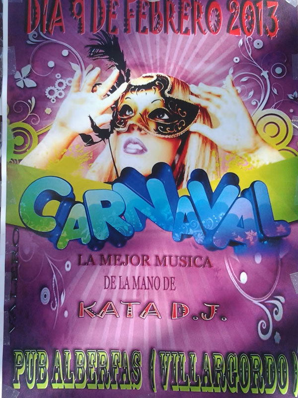 El próximo sábado 9 de Febrero el Pub Alberfas celebra una fiesta de Carnaval con Dj Kata. También tenemos diponible el cartel de carnaval en Discoteca Flour con la Charanga Los pejigueras. Os dejamos los carteles.