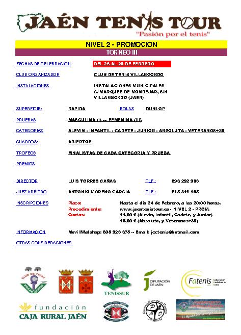 Abierto el Plazo de Inscripción a Jaén Tenis Tours 2016 Nivel 2 - Torneo 3