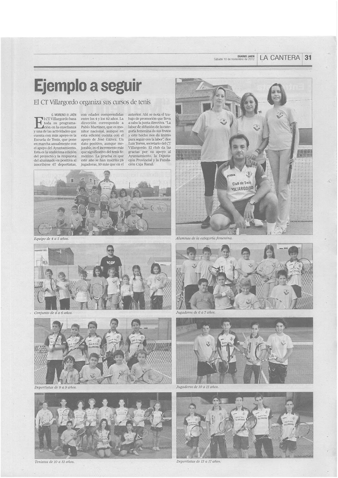 El pasado Sábado, 3 de Noviembre el Diario Jaén publicó la siguiente noticia referente al Tenis en nuestro municipio: