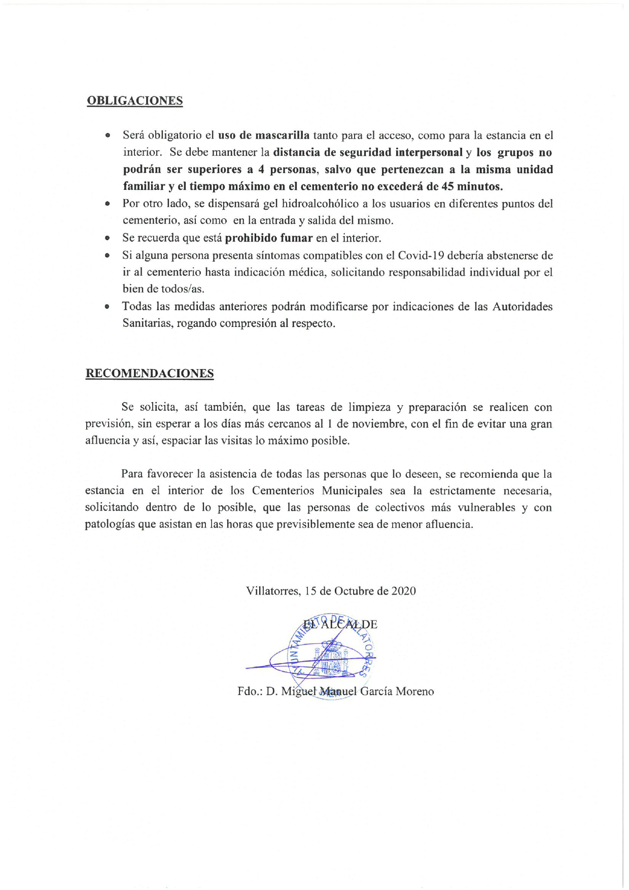 El Ayto. de Villatorres publica bando sobre la apertura del cementerio