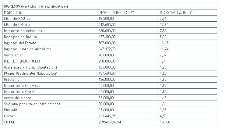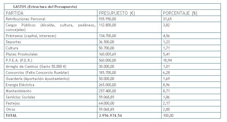 Por 7 votos a favor (IULV-CA y PSOE) y 4 en contra (PP), se aprobó provisionalmente el Presupuesto del ejercicio 2011, cuyo resumen es el siguiente (l@s vecin@s que lo deseen pueden verlo íntegramente en las Oficinas del Ayuntamiento):