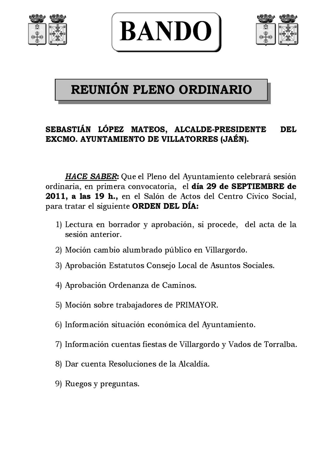 Convocada reunión de pleno ordinario para el próximo 29 de septiembre a las 19:00 h en el salón de actos del ayuntamiento con el siguiente orden del día:
